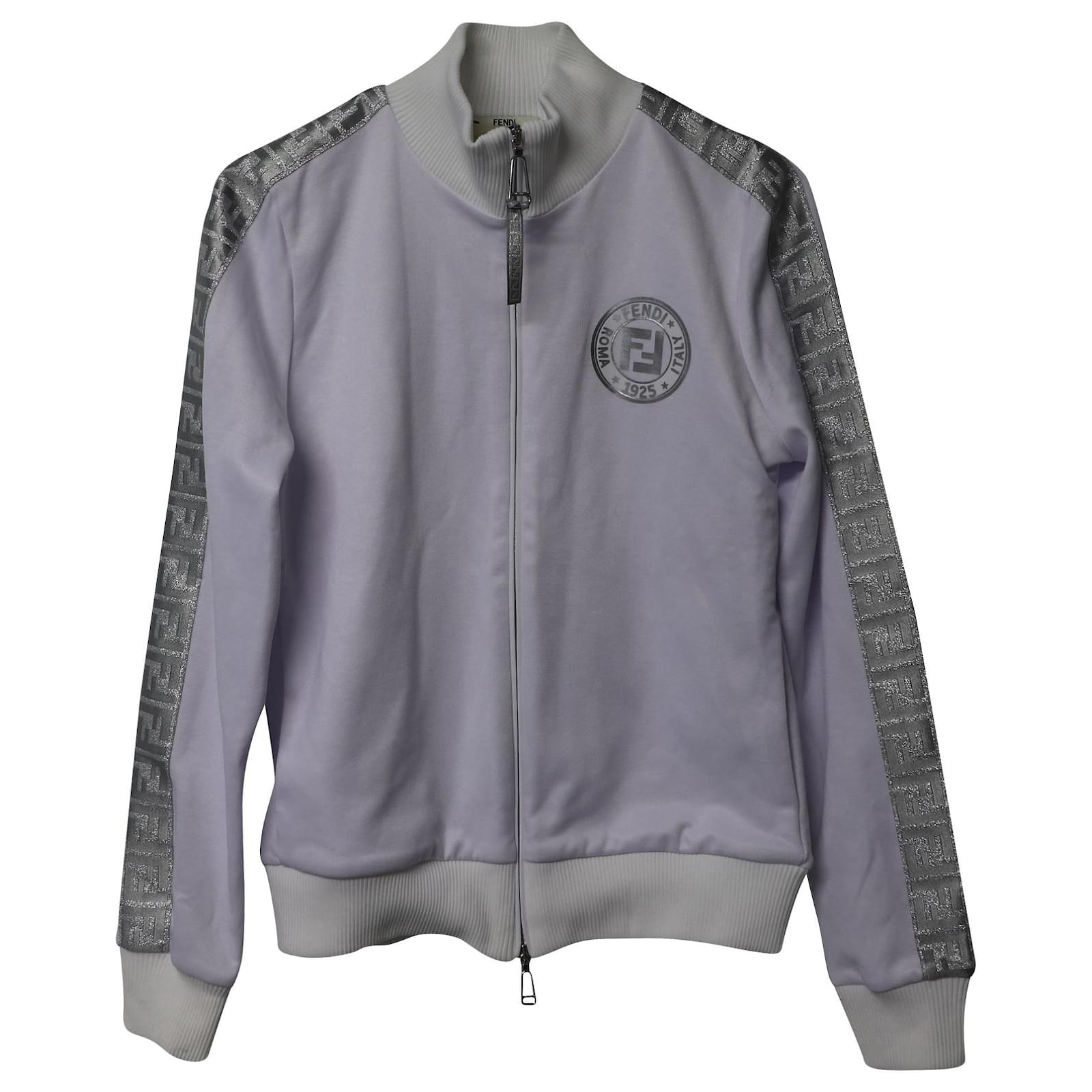 Fendi Veste de survêtement zippée en coton blanc Polyester